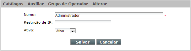 Para alterar um grupo que já exista no Catálogo Auxiliar de Grupo de Operador, selecione-o no grid e clique no ícone