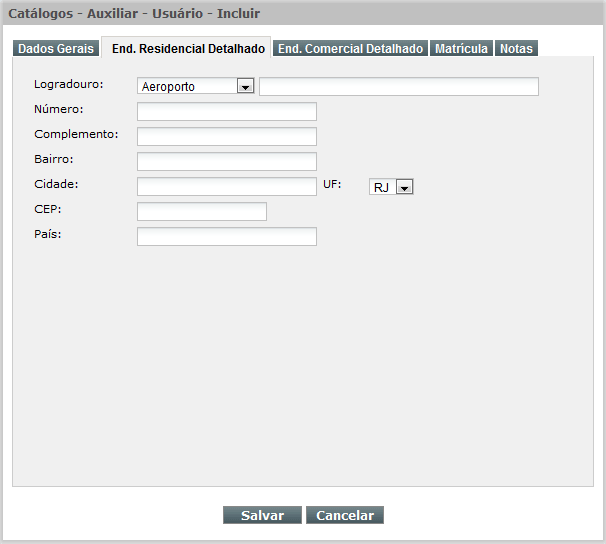Para incluir um novo usuário ao Catálogo Auxiliar de Usuário, clique no ícone