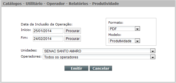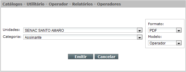 No Catálogo Utilitário de Operador deverão ser cadastrados os nomes dos operadores do sistema.