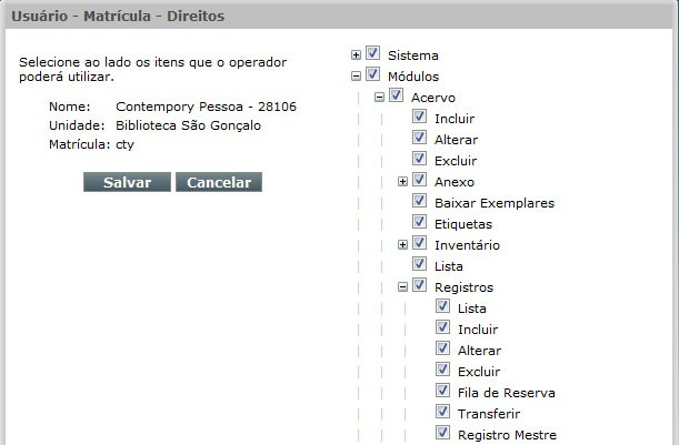 Sem este direito o operador só pode incluir registro(s) para a sua unidade.
