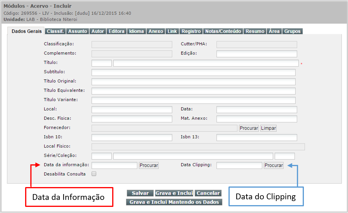 - Da Informação -> É a data cadastrada no campo “Data da Informação”, conforme exemplificado na figura abaixo.