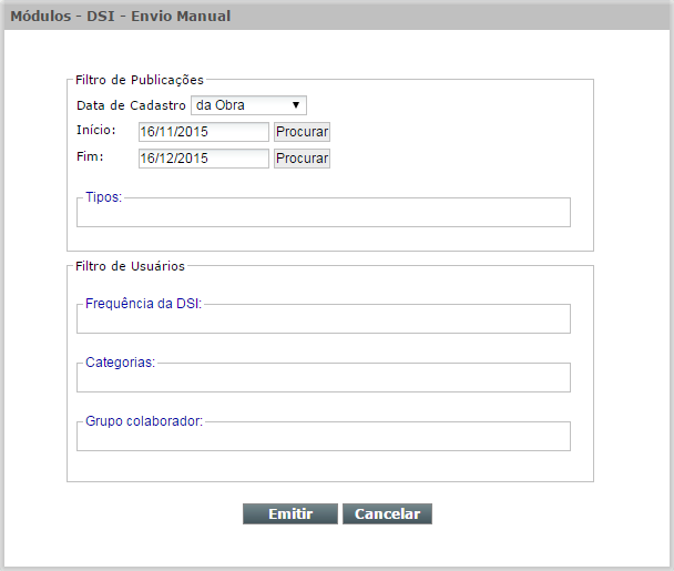 Atenção: A DSI verifica novos títulos cadastrados no período selecionado e deve ser o 1º registro/tombo de um título no grupo de unidades.